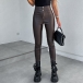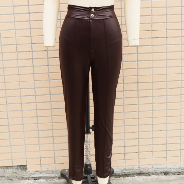 Fashion High-rise Button Artificial Leather PU Skinny Pants