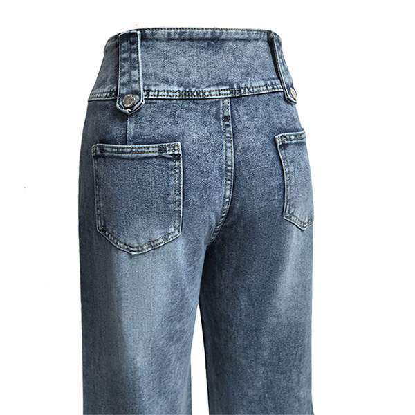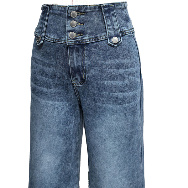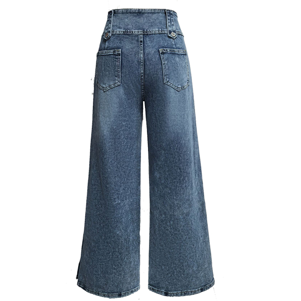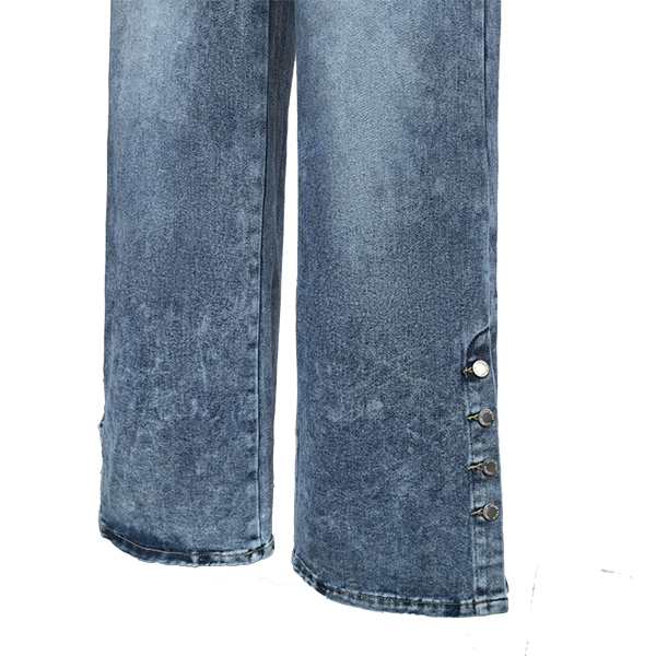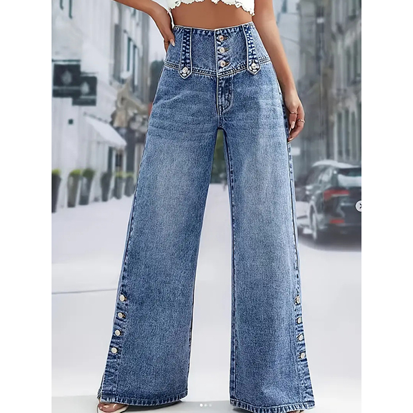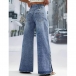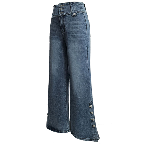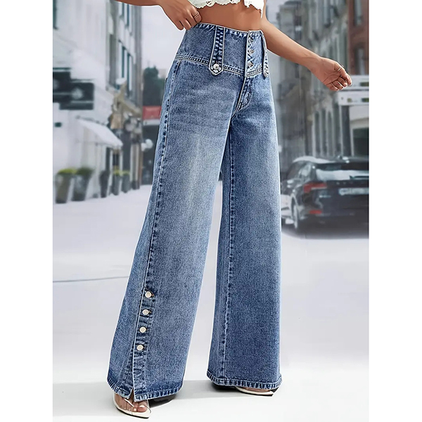 Fashion High-rise Button Fly Side Button Slit Wide-leg Old-washed Denim Jeans