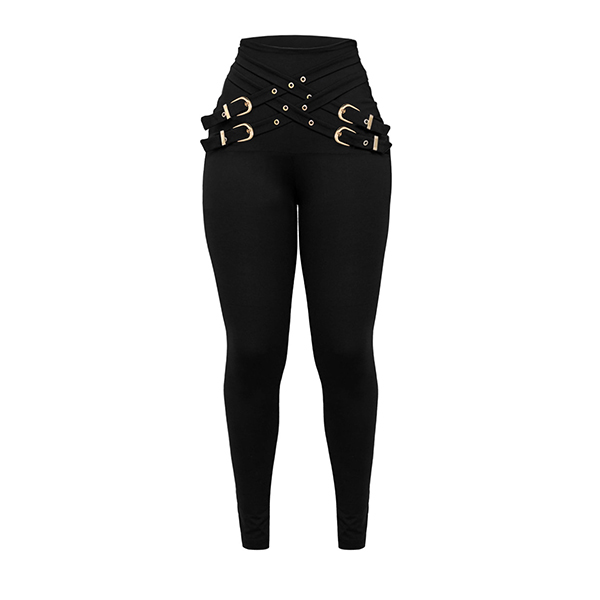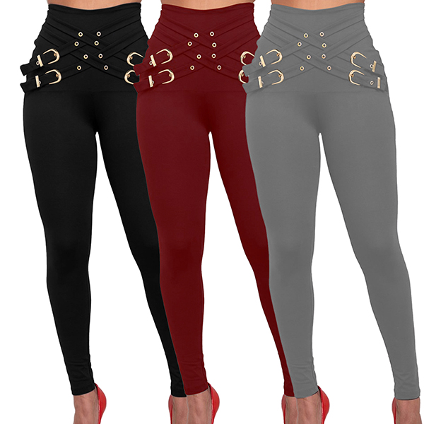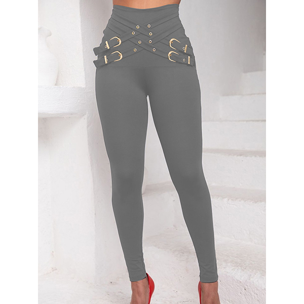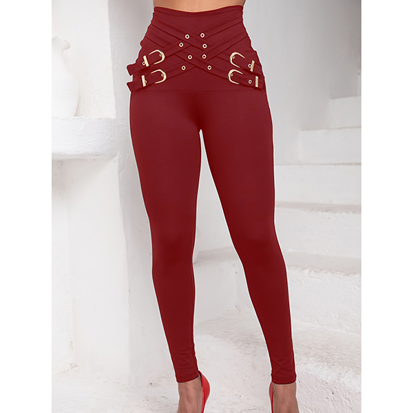 Fashion High-rise Criss-cross Buckle Skinny Pants