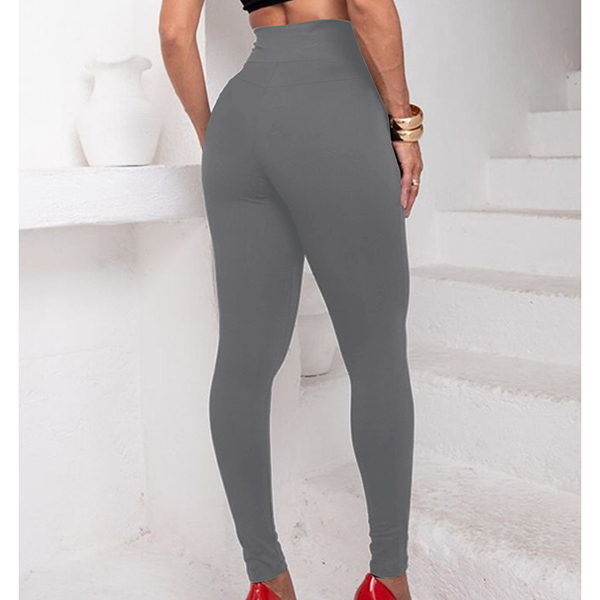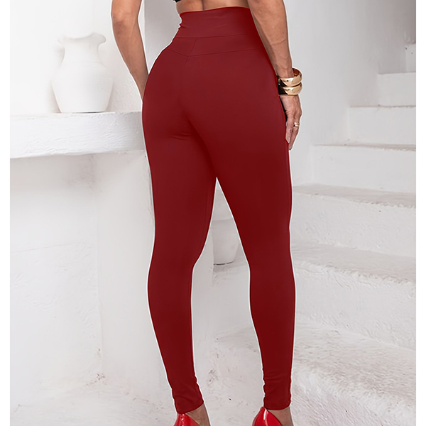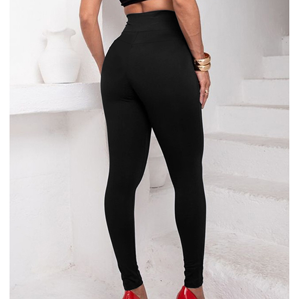 Elevate your style with this Skinny Pants. These fashionable pants feature a flattering high-rise waist and a unique criss-cross buckle detail that adds a trendy touch. Pair them with a fitted top or oversized sweater for a stylish look that turns heads!