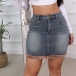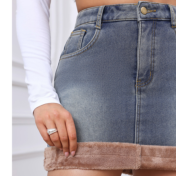 Fashion High-rise Denim Skirt with Warm Plush Lined