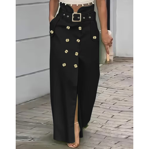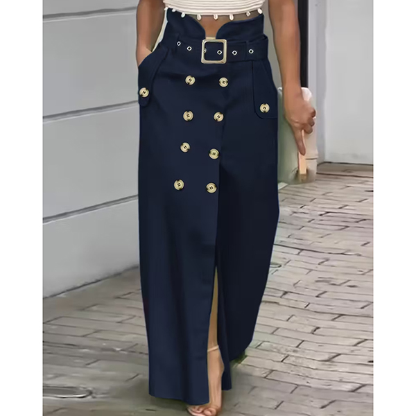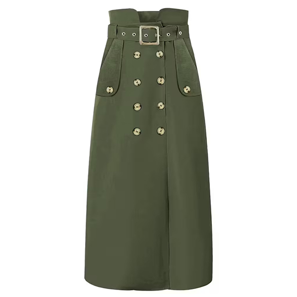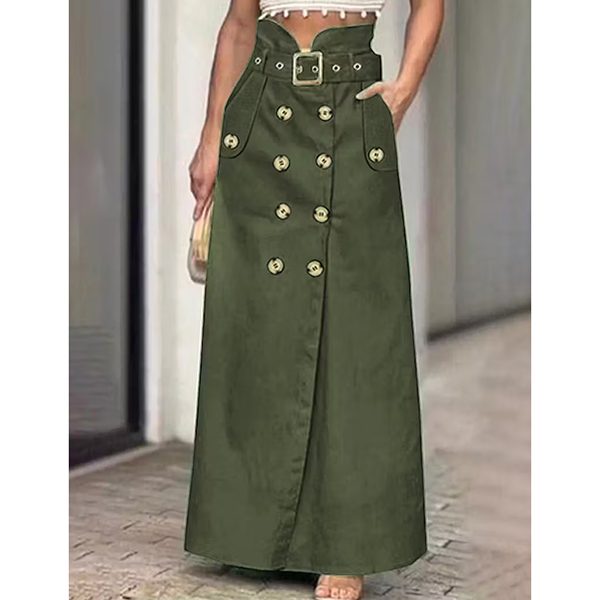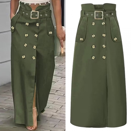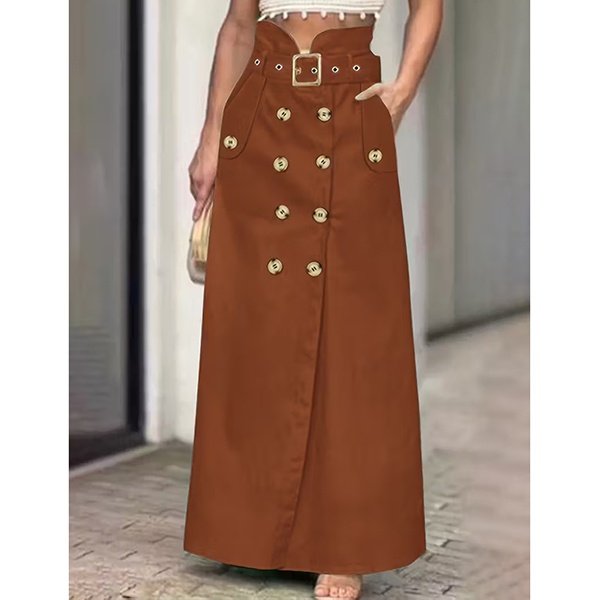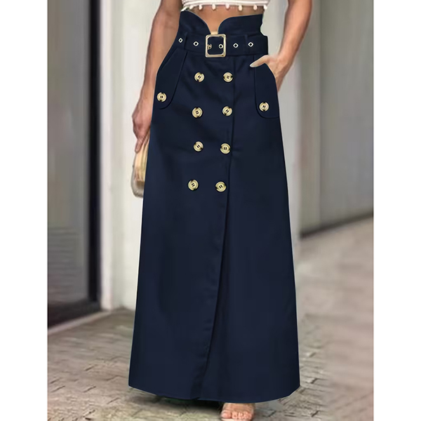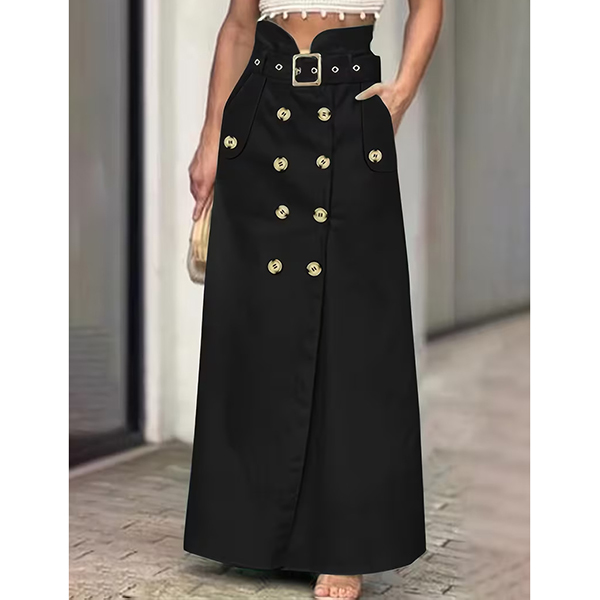 Fashion High-rise Double-breasted A-line Maxi Skirt with Belt