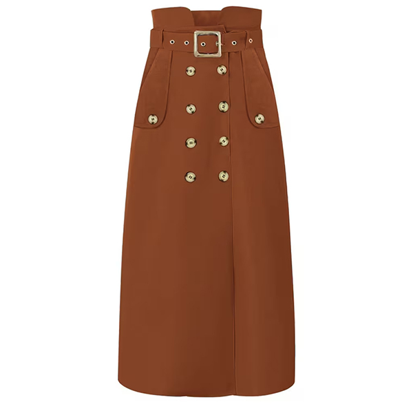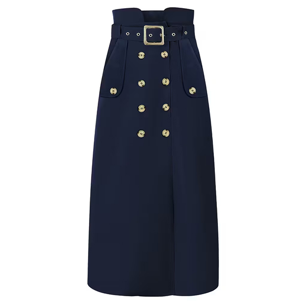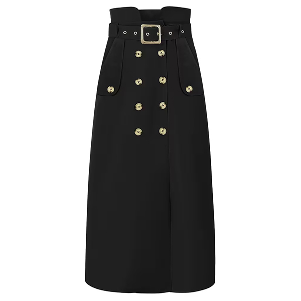 This maxi skirt features elegant high-rise styling with structured double-breasted closure and graceful A-line silhouette for contemporary refined elegance. The belt offers adjustable waist definition and coordinated styling appeal. Wanna have a try?