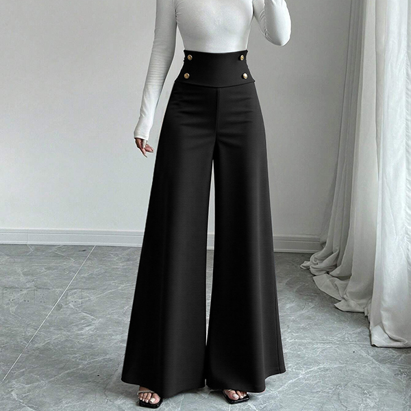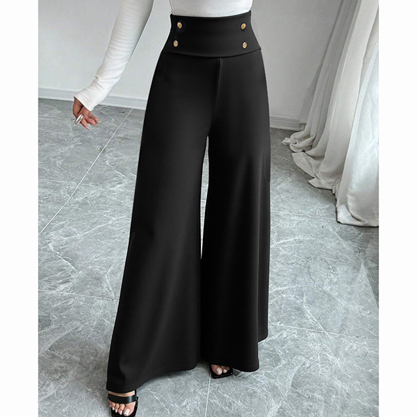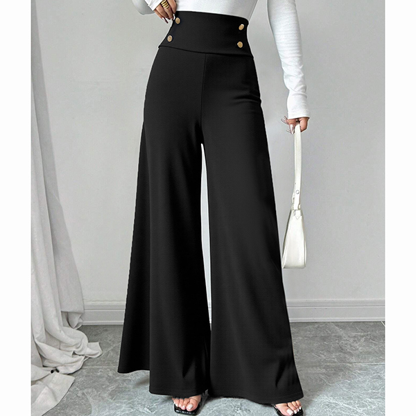 This pants features flattering high-rise styling with classic double-breasted design and contemporary wide-leg silhouette for professional elegant sophistication. Style with fitted tops for daily fashion look~