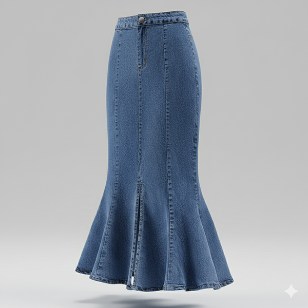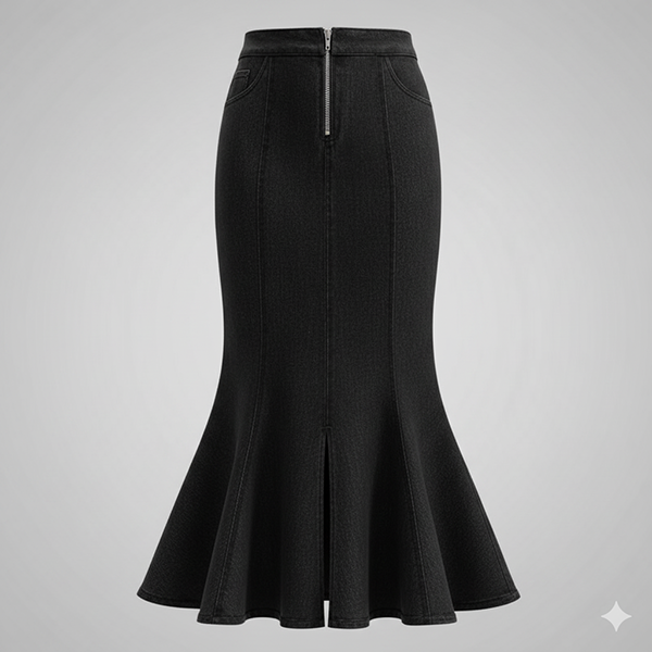 This is a trendy and versatile skirt that exudes casual chic vibes and modern elegance. It features high-rise and fishtail hem adds a touch of sophistication and flair, creating a unique and stylish twist to a traditional denim skirt. Perfect for a casual day out, a weekend brunch, or a stylish outing with friends.