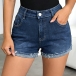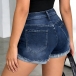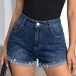 Fashion High-rise Frayed Hemline Old-washed Denim Shorts