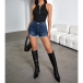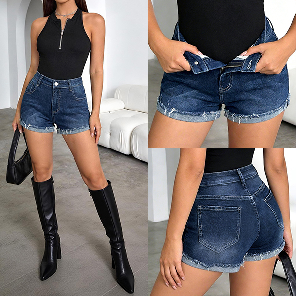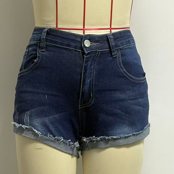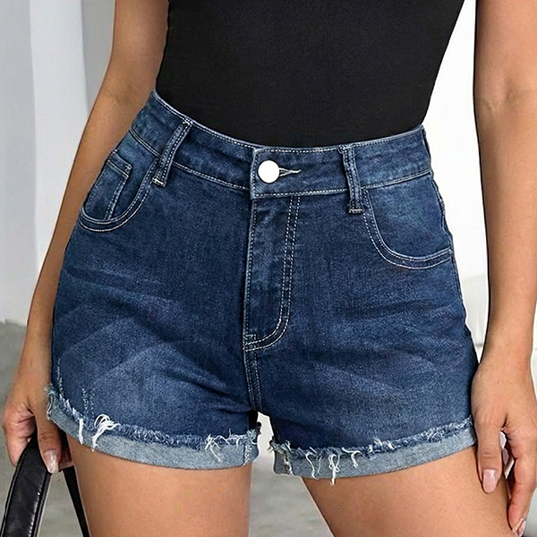 These chic shorts feature contemporary fashion styling with flattering high-rise construction and authentic old-washed denim design for modern casual sophistication. The folded frayed hemline provides casual charm with relaxed finishing whilst the denim construction offers durable comfort and versatile styling. Perfect for daily wear.
