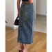 Fashion High-rise Front Slit Old-washed Denim Skirt