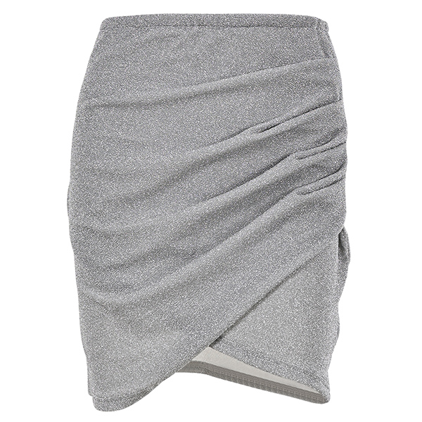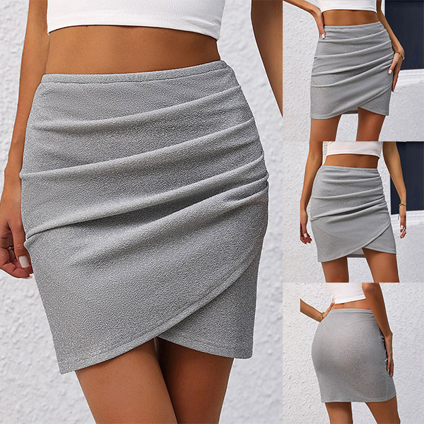 This skirt features a high-rise waist and an irregular hemline for a unique and fashionable look.
