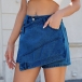 Fashion High-rise Irregular Henline Old-washed Denim Skorts