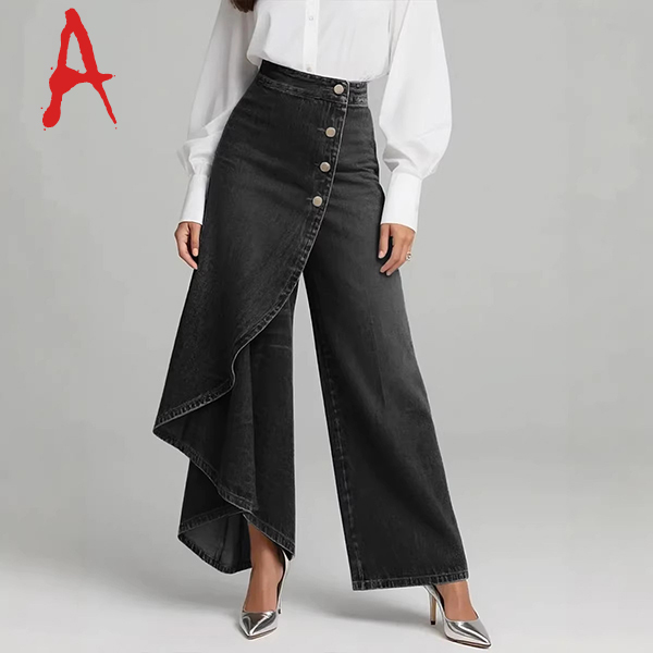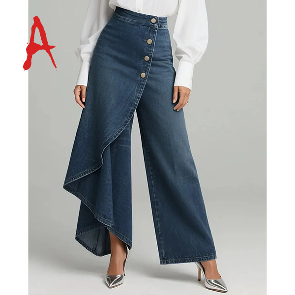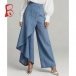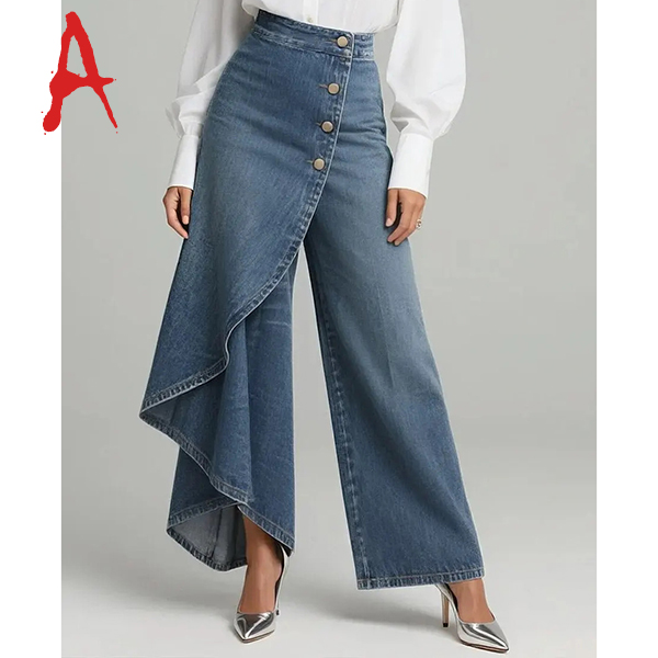 Fashion High-rise Irregular Straight-cut Old-washed Denim Jeans