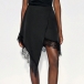 Fashion High-rise Lace Spliced Irregular Hemline Skirt