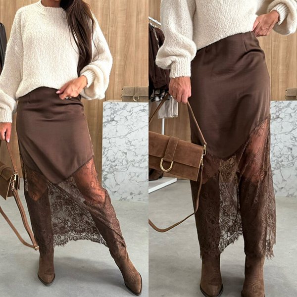 Fashion High-rise Lace Spliced Skirt