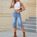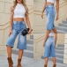 These Fashion Denim Cropped Pants are a versatile and stylish addition to your wardrobe. Pair them with a blouse and heels for a chic and sophisticated look, or with a t-shirt and sneakers for a casual and laid-back vibe.