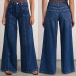 Fashion High-rise Patch Pockets Wide-leg Old-washed Denim Pants