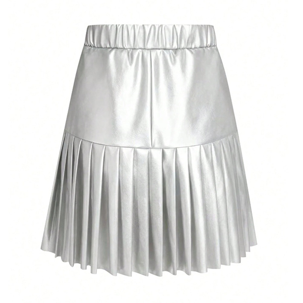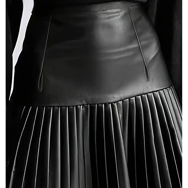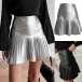 Fashion High-rise Pleated Hemline Artificial Leather PU Skirt