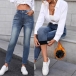 Fashion High-rise Plush Lined Old-washed Denim Jeans