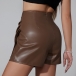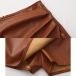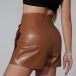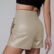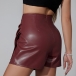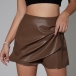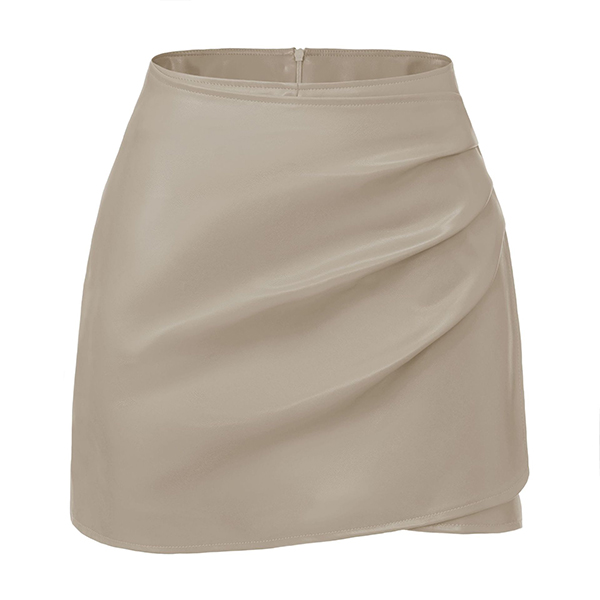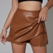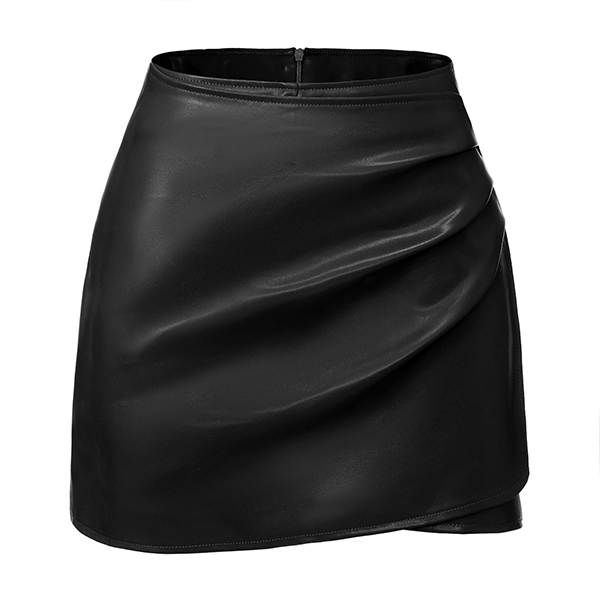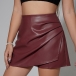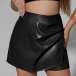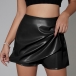 Fashion High-rise Ruched Side Slit Artificial Leather PU Skorts