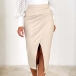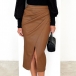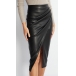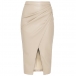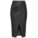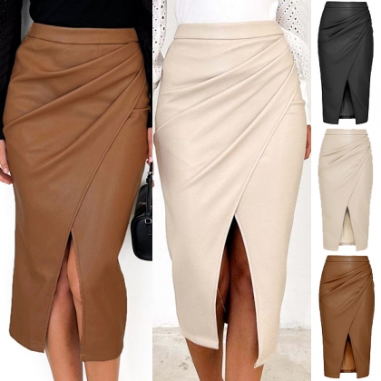 Add a touch of edgy sophistication to your wardrobe with this fashionable skirt. The high-rise design offers a flattering and sleek silhouette, perfect for a chic and trendy look. The ruched detailing and slit design creats a unique and stylish element. Pair this PU skirt with a blouse for a fashion look.