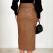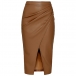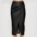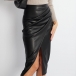 Fashion High-rise Ruched Slit Artificial Leather PU Skirt