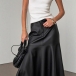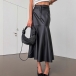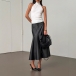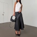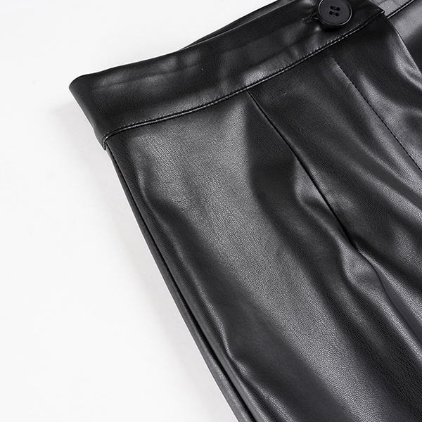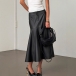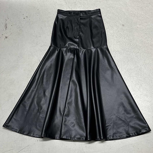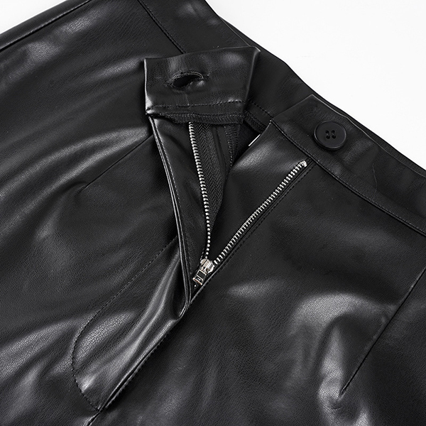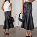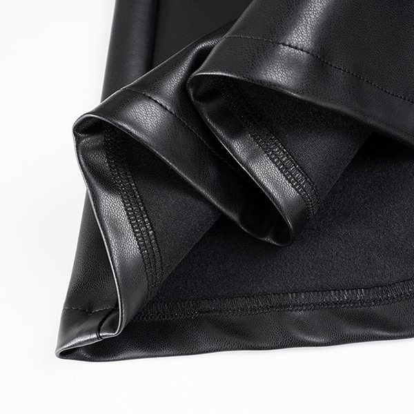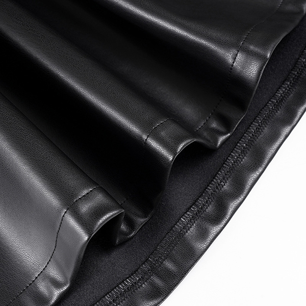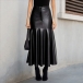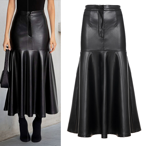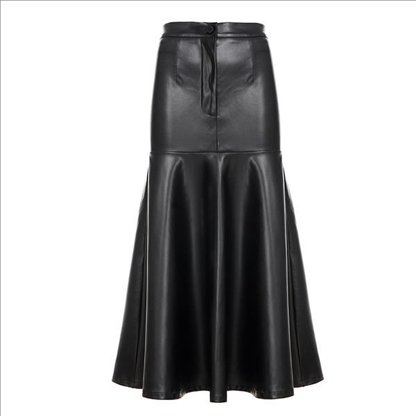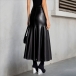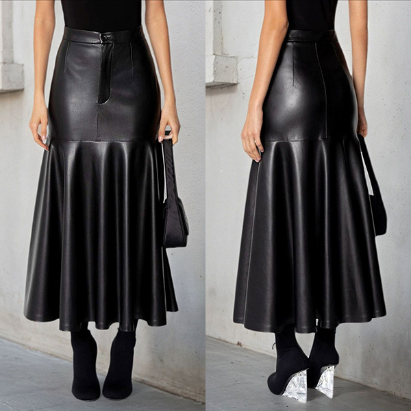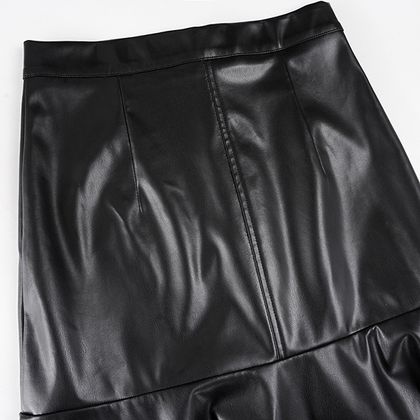 Fashion High-rise Ruffle Hemline Artificial Leather PU Skirt