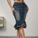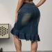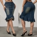 Fashion High-rise Ruffled Frayed Hemline Slim-fit Denim Skirt