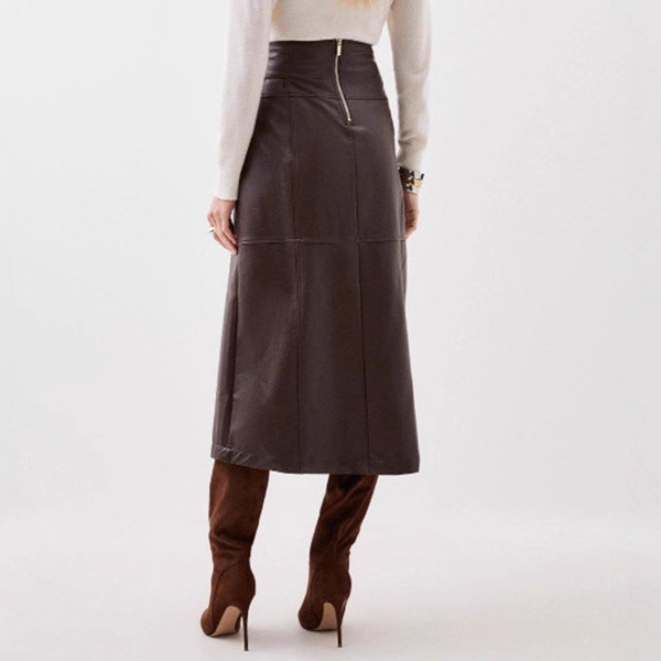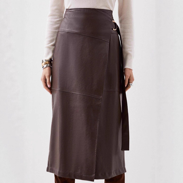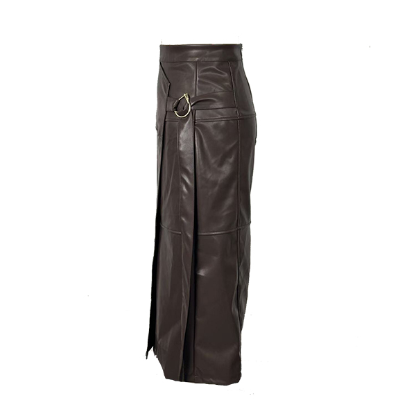 This contemporary skirt features flattering high-rise waistline with functional side buckle closure and modern wrap silhouette for urban sophisticated elegance. Style with blouses and heels for sophisticated coordination, or layer with blazers and structured accessories while highlighting the buckle hardware. Perfect for daily wear.