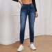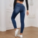 Fashion High-rise Side Button Old-washed Skinny Denim Jeans