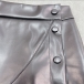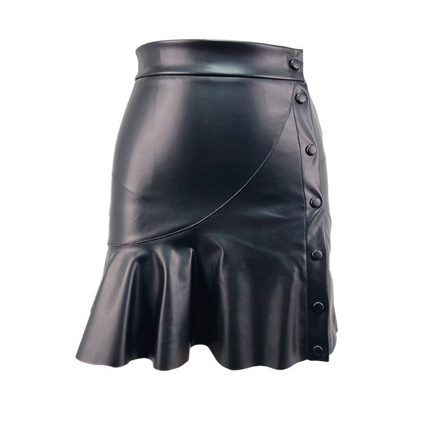 Fashion High-rise Side Button Slit Ruffle Hemline Artificial Leather PU Skirt