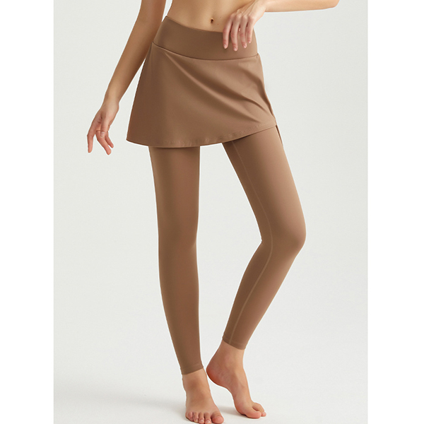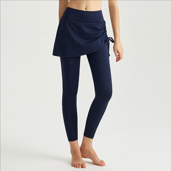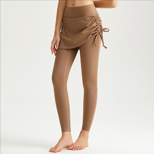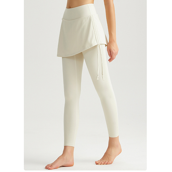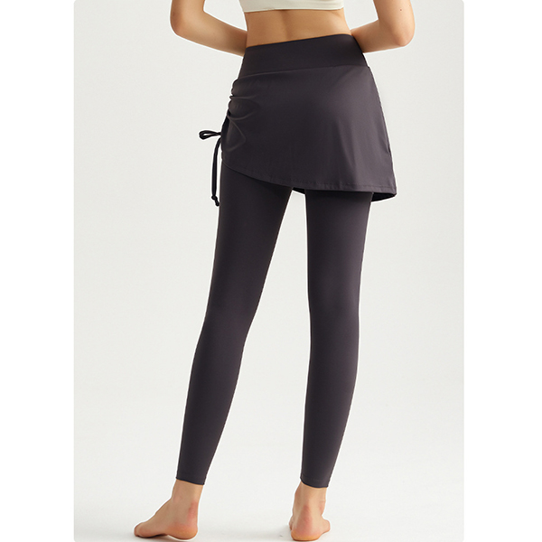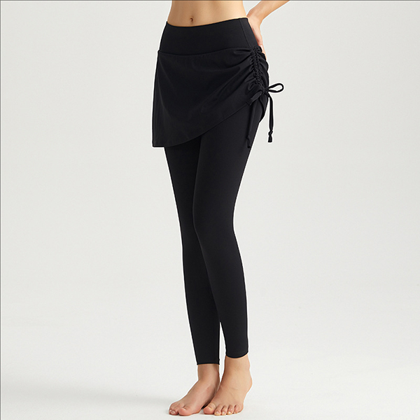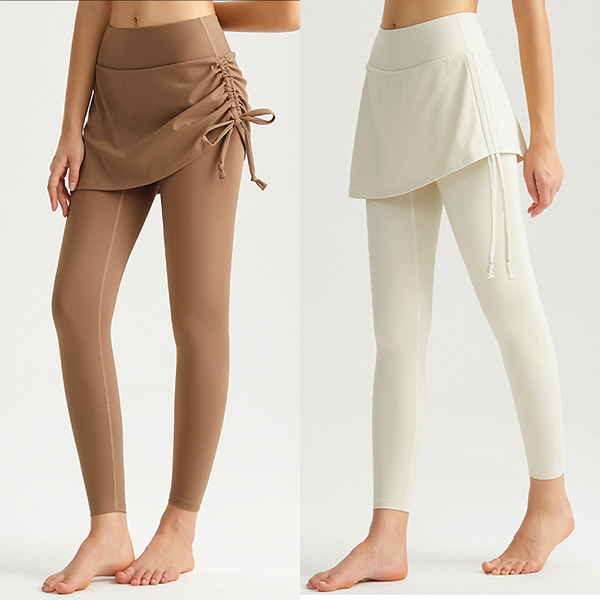 Fashion High-rise Side Drawstring Mock-two-piece Leggings