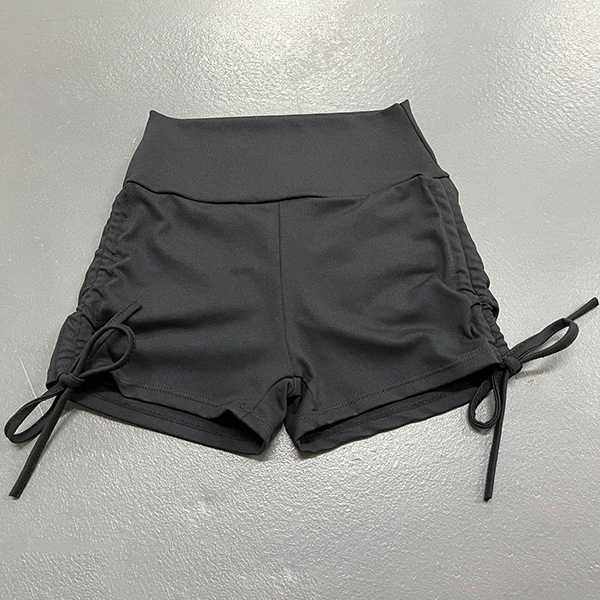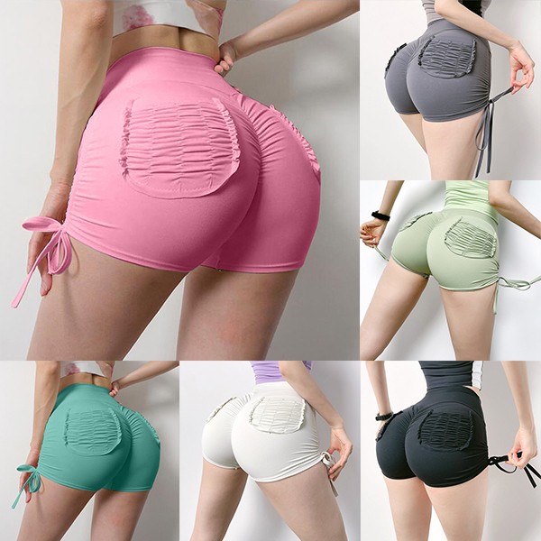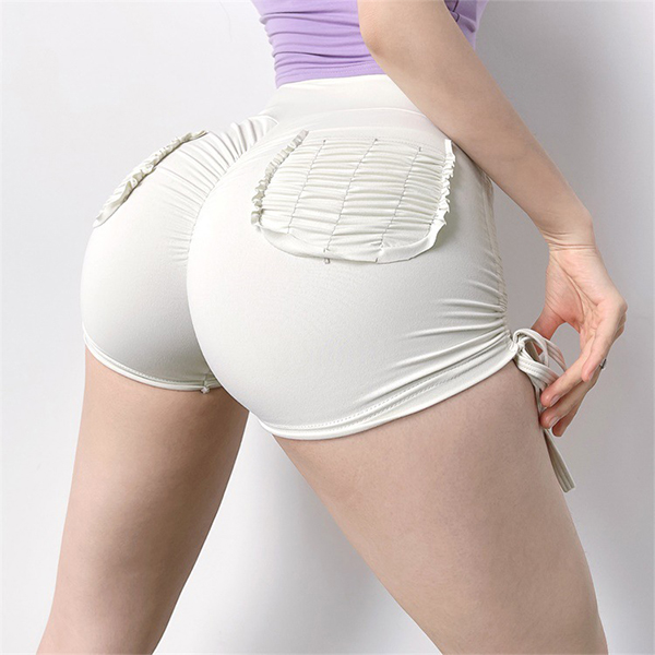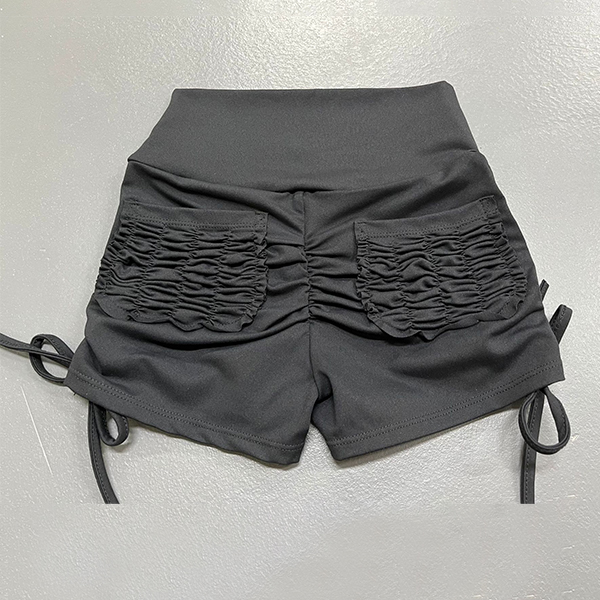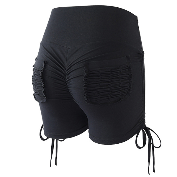Fashion High-rise Side Drawstring Ruched Patch Pockets Workout Yoga Shorts