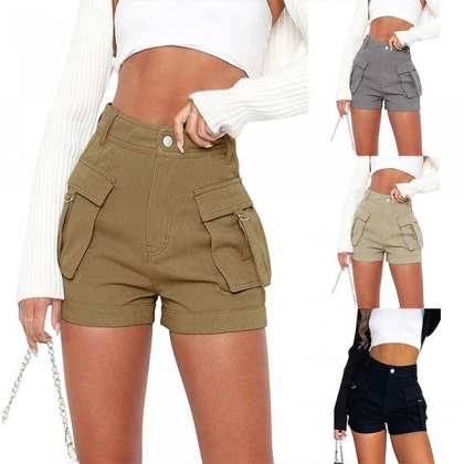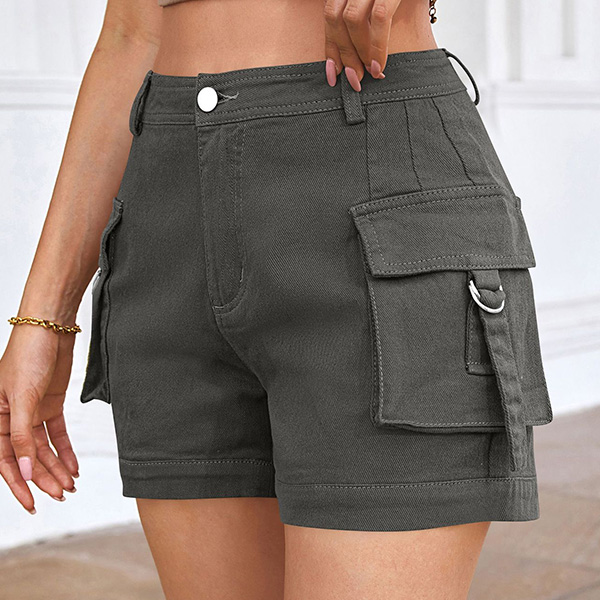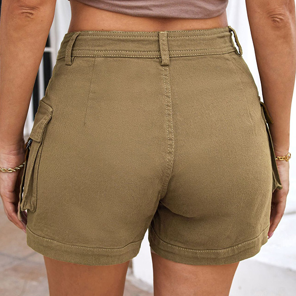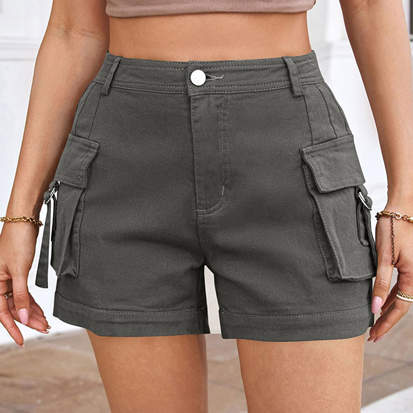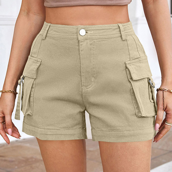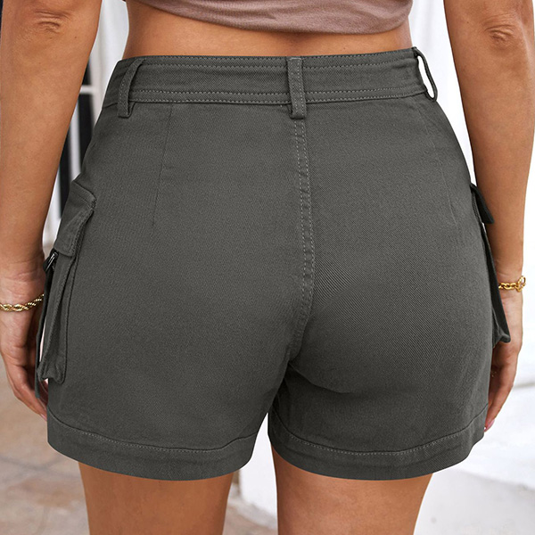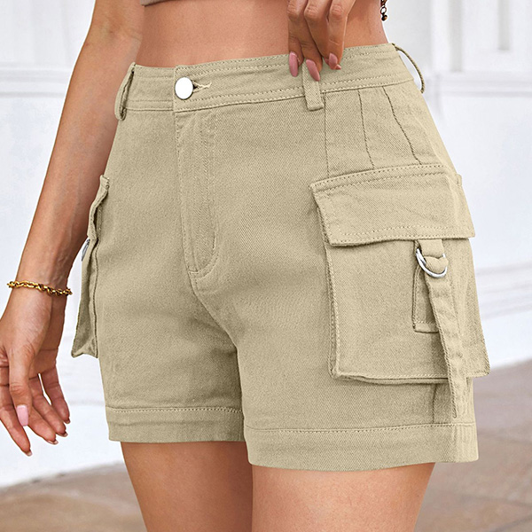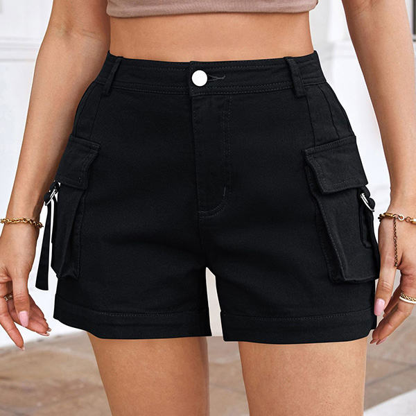 Fashion High-rise Side Patch Pockets Cargo Denim Shorts