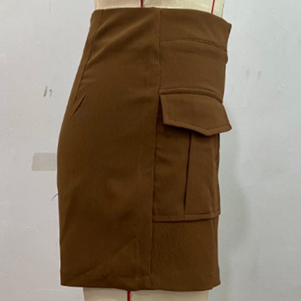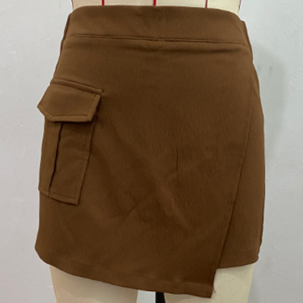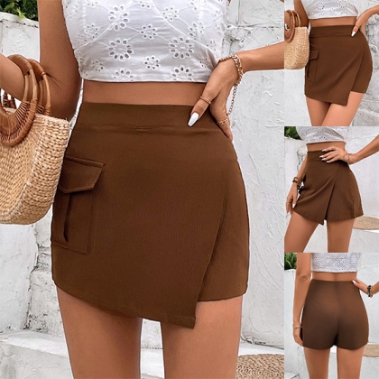 Fashion High-rise Side Patch Pockets Irregular Hemline Skorts