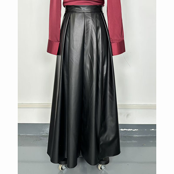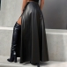 This black maxi skirt features flattering high-rise waistline with dramatic side slit detailing and luxurious artificial leather construction for contemporary edgy elegance. Pair with fitted tops and heels for contemporary sophisticated appeal.