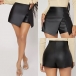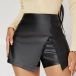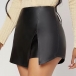 Fashion High-rise Side Slit Artificial Leather PU Skorts