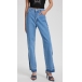 Fashion High-rise Side Slit Fray Hemline Straight-cut Denim Jeans