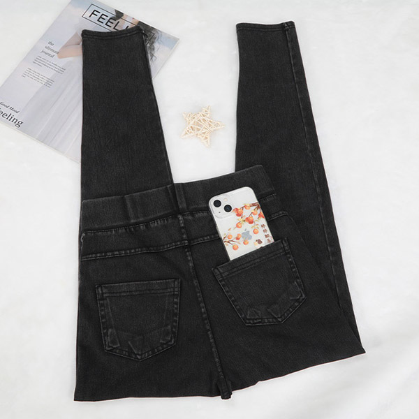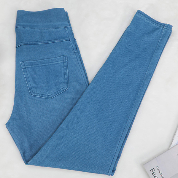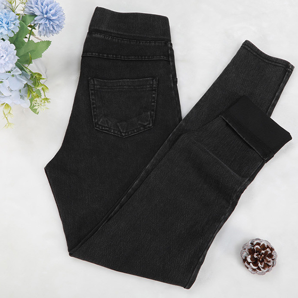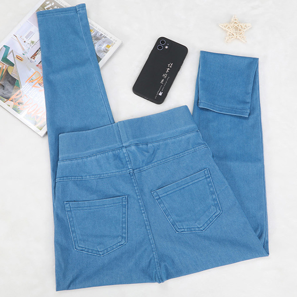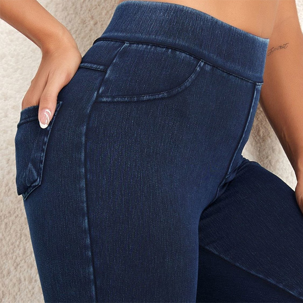 This denim jeans features a high-rise waist and a skinny fit for a flattering and fashionable look.
