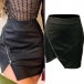 Fashion High-rise Slant Zipper Irregular Hemline Artificial Leather PU Skirt