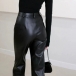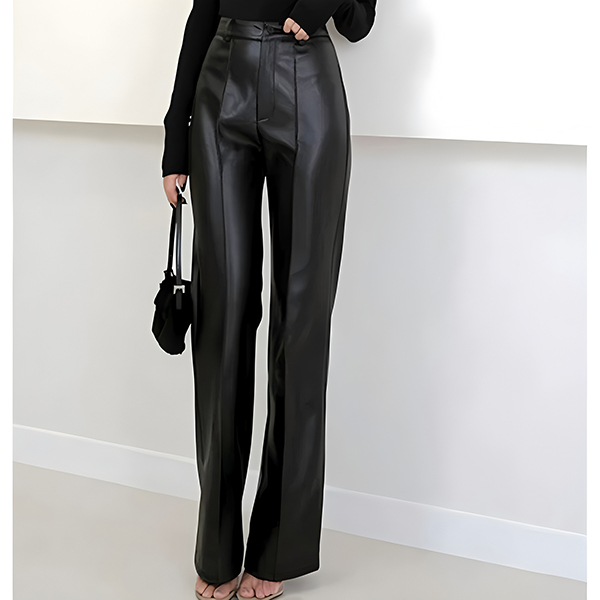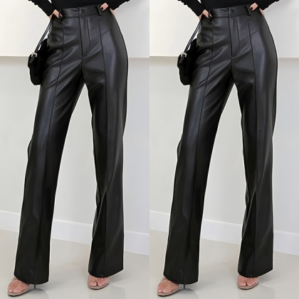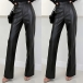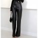 Fashion High-rise Straight-cut Artificial Leather PU Pants