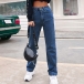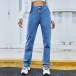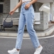 Fashion High-rise Straight-cut Old-washed Denim Jeans