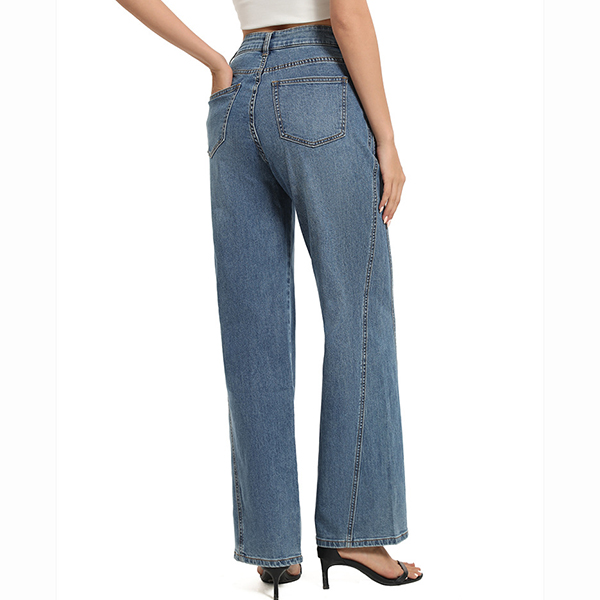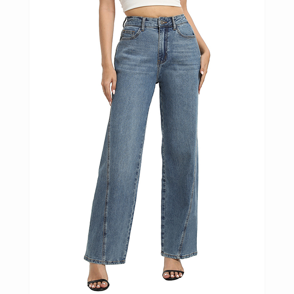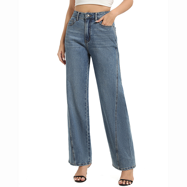 Fashion High-rise Straight-cut Old-washed Denim Jeans