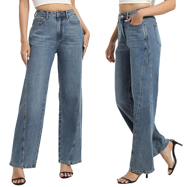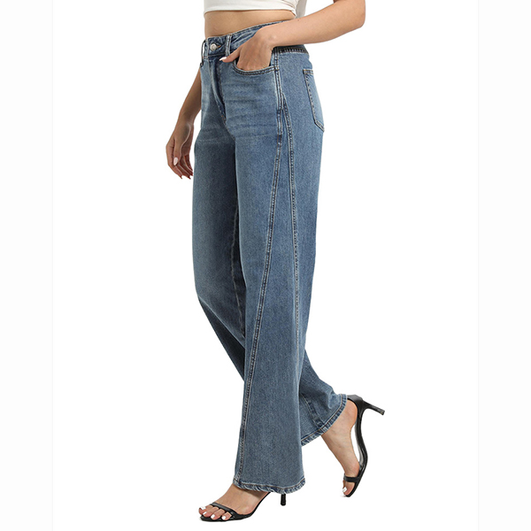 These jeans feature flattering high-rise styling with classic straight-cut silhouette and authentic old-washed finish for contemporary vintage elegance. Perfect for daily wear.