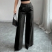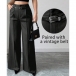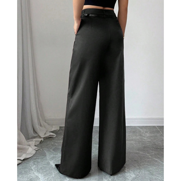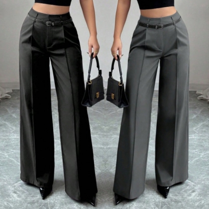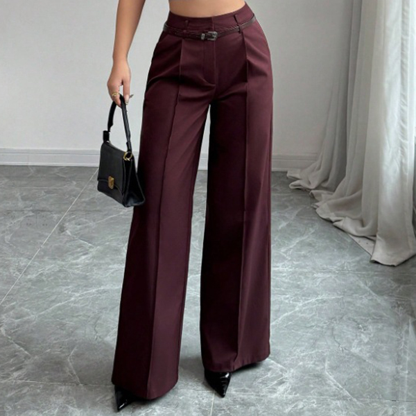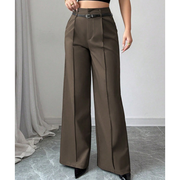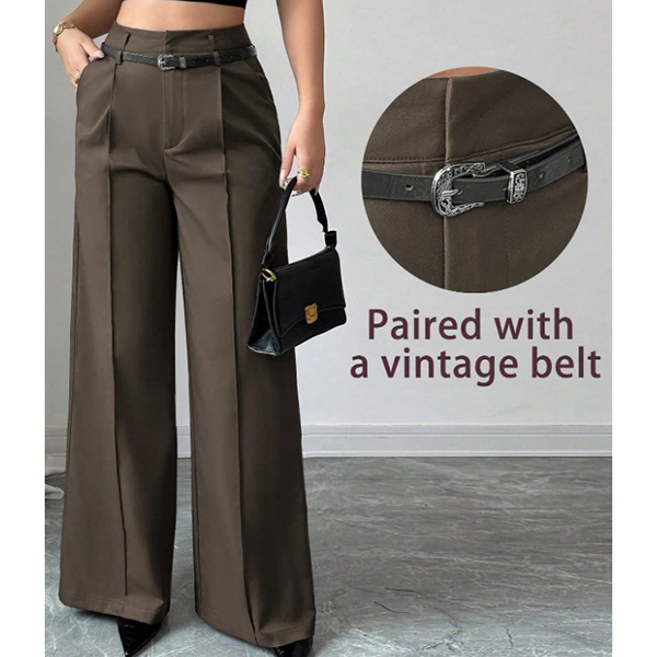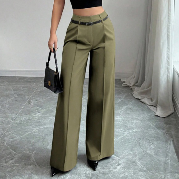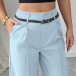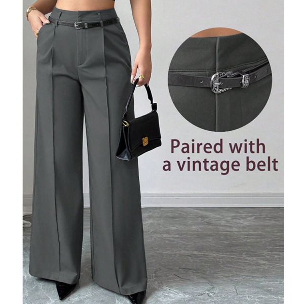 These pants feature flattering high-rise waistline with classic straight-cut silhouette and coordinating belt for contemporary tailored elegance. Perfect for daily wear.