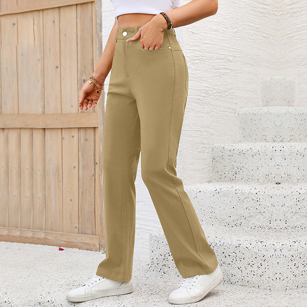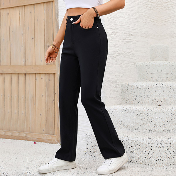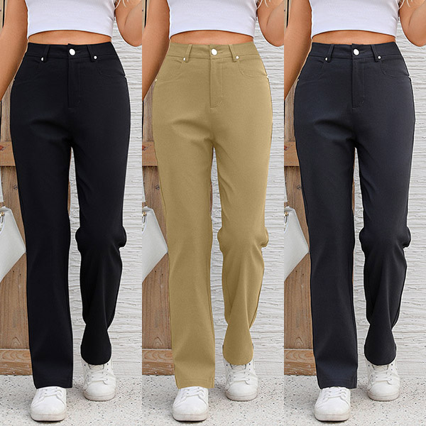 These fashion-forward pants feature a high-rise waistline and a straight-leg silhouette, creating a sleek and sophisticated look that is both flattering and on-trend.