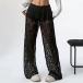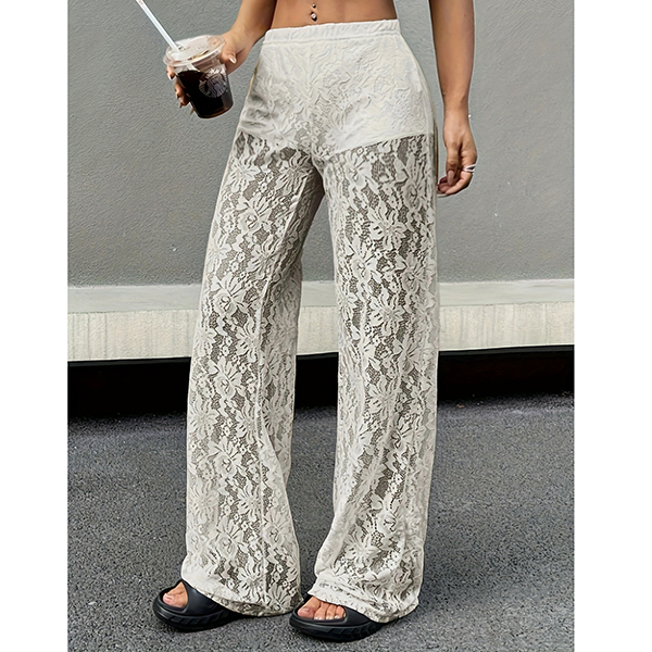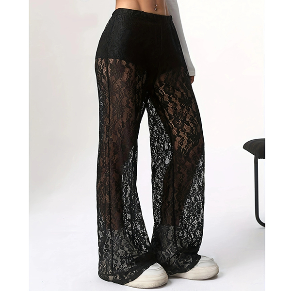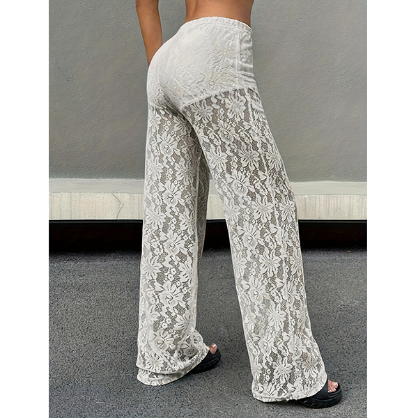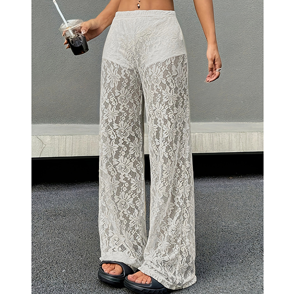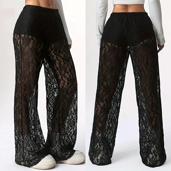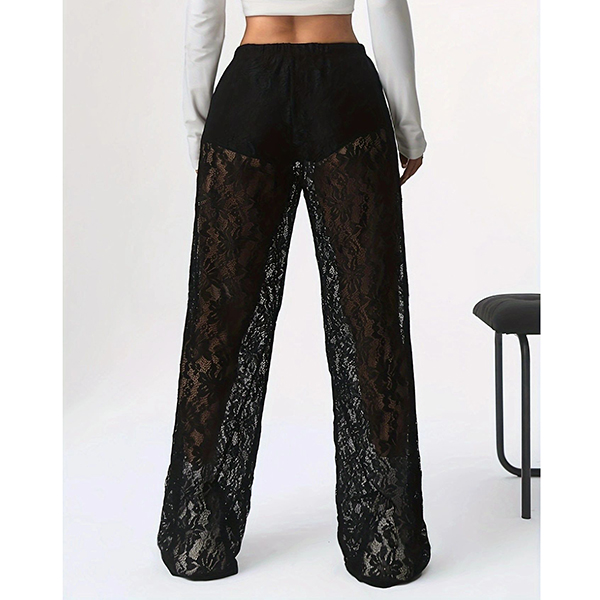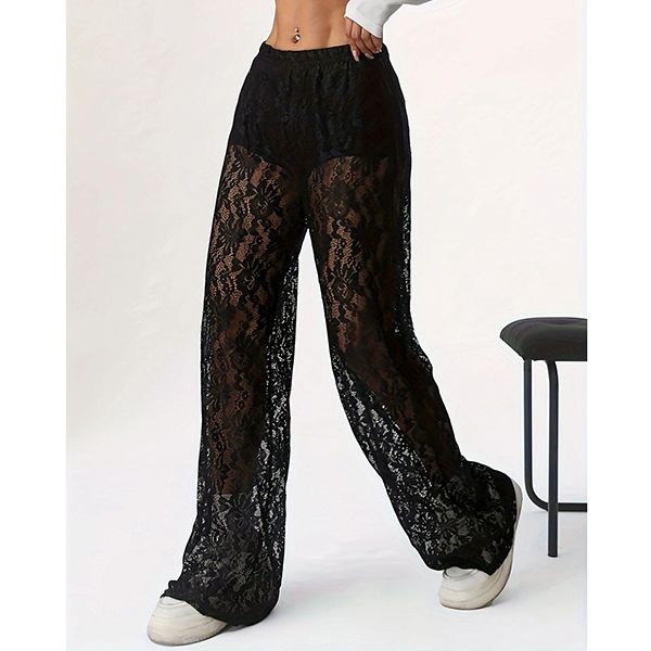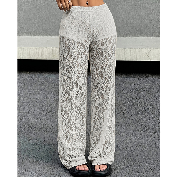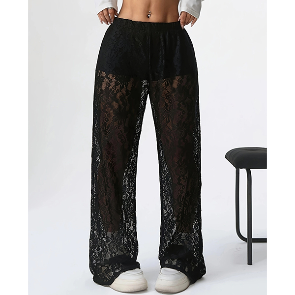 Fashion High-rise Straight-cut Semi-through Lace Pants