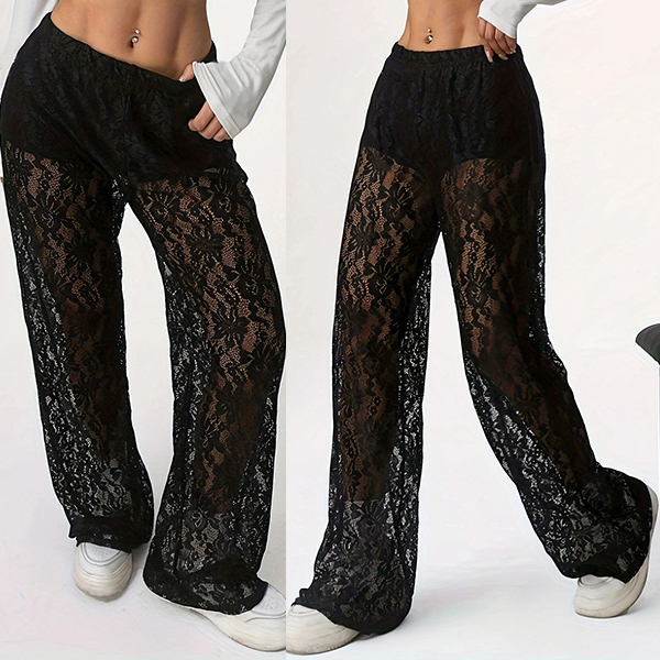 Add a touch of elegance to your wardrobe with this Lace Pants. These stunning pants feature a high-rise design that flatters your figure, while the intricate lace provides a delicate, semi-sheer look. Perfect for pairing with a fitted top or blouse.