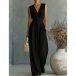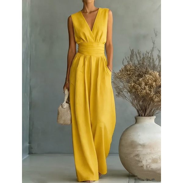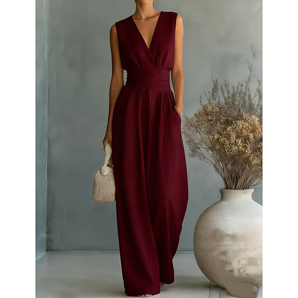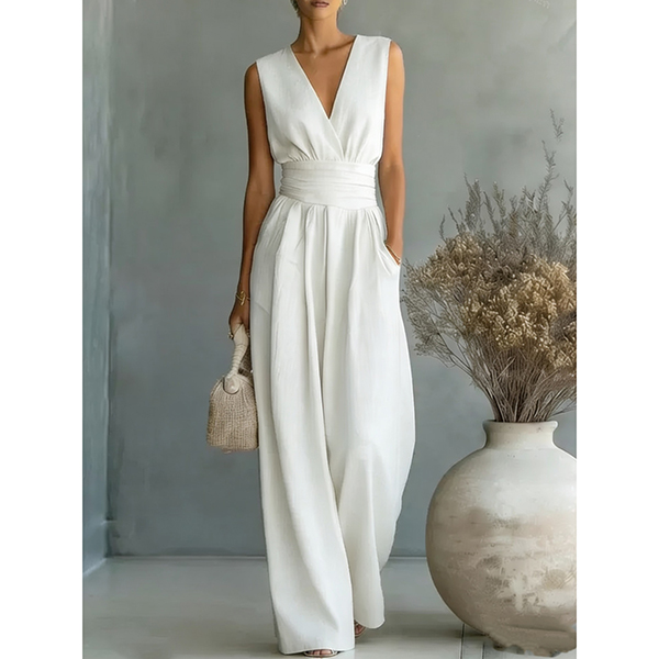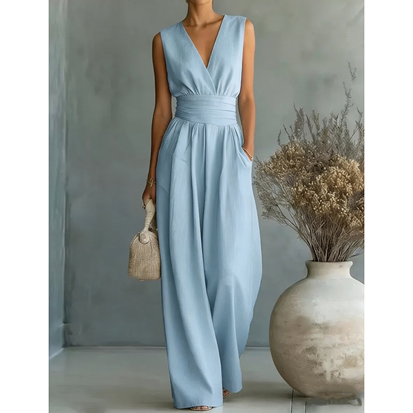 Fashion High-rise V-neck Sleeveless Wide-leg Jumpsuit