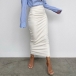 Make your wardrobe more complete by adding this PU leather skirt. The high waist and fit silhouette design can better showcase your slender figure,while the back-slit hem design will break the simple and dull design style. If you wanna look sassy,flirty and feminine,then you can match with a crop top!
