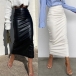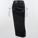 Fashion High Waist Back-slit Hem PU Leather Skirt