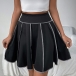 When you wanna flaunt off your charming and slender legs,you can just have a try this A-line skirt. The high waist design can showcase your waistline,while contrast color element breaks the simple and dull design style. You can just match with a crop top to achieve for a sexy ans flirty daily look.